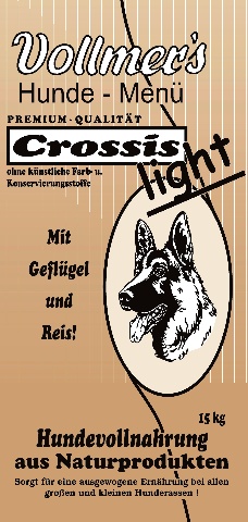 Vollmer's Crossis light enthält nur hochwertige Rohstoffe, die nach Vollmer's speziellem schonenden Extrusionsverfahren voll aufgeschlossen sind. Dadurch ist die Nahrung leicht und hochverdaulich und entspricht den besonderen Ansprüchen alternder Hunde.