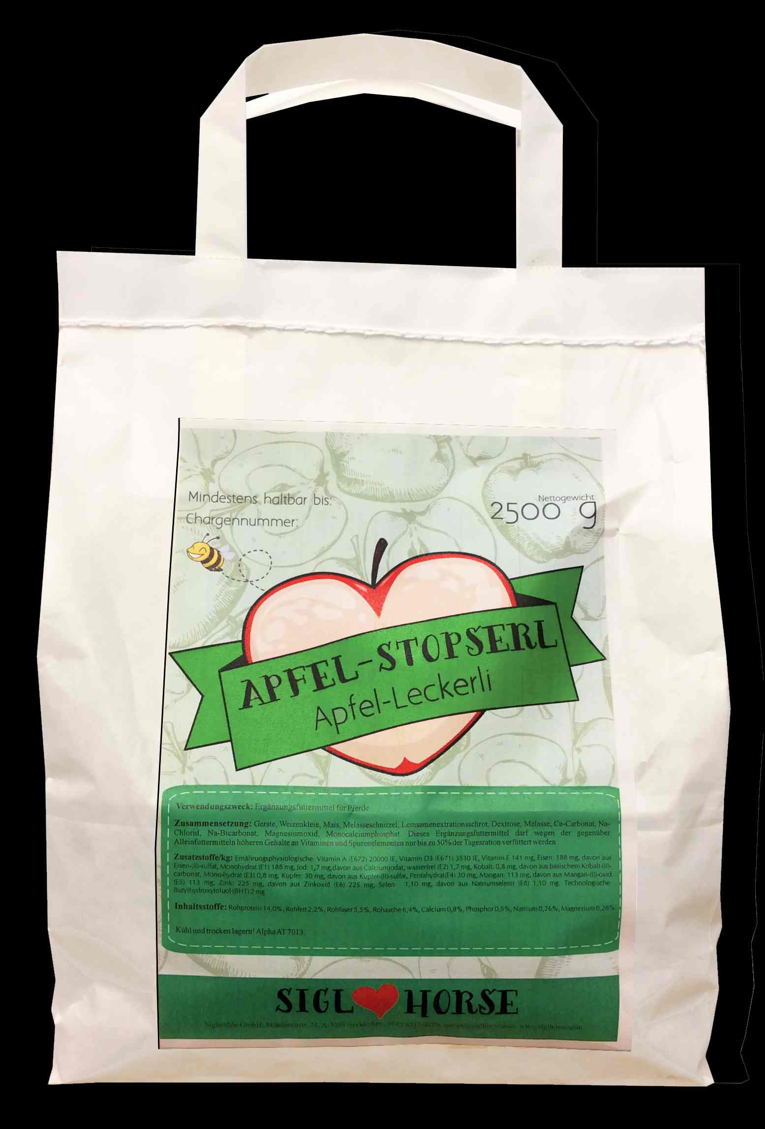 Ergänzungsfuttermittel für Pferde. Max. 1 kg/Tier/Tag füttern