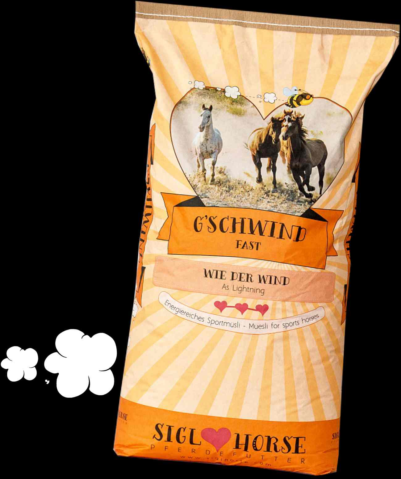 Die ausgeklügelte Zusammensetzung sorgt für eine abgestufte Energieanflutung (schnell - langsam verfügbar). Gschwind enthält luftig locker aufgepopptes Getreide. Durch dieses schonende Verarbeitungsverfahren ist es leicht verdaulich und v.a. hochenergetisch.